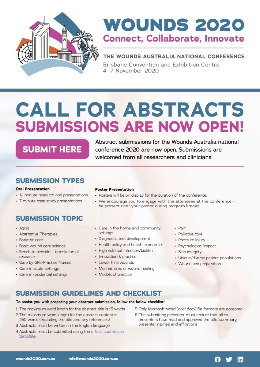 Abstract submission deadline extended to 6 April 2020-Wounds 2020 conference, Brisbane, Australia (4-7 Nov 2020)
